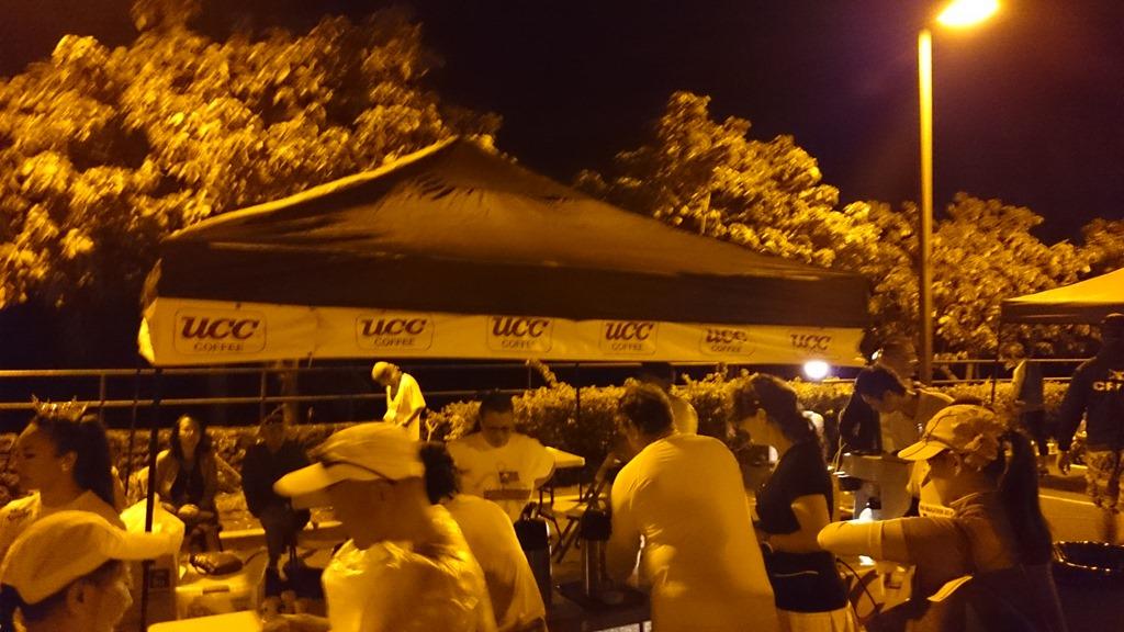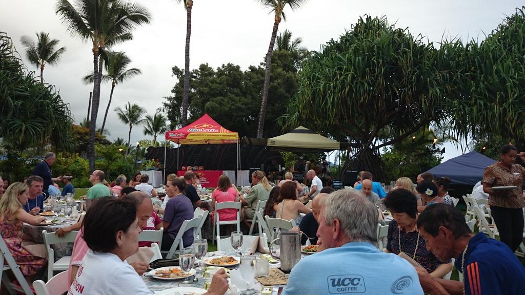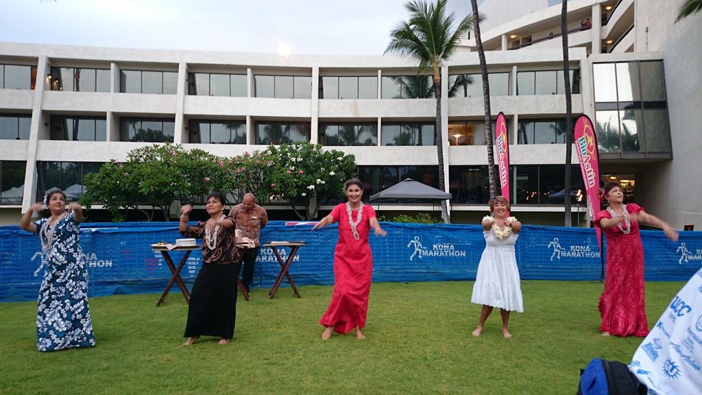 そう、建物の中も走るんです。面白いコースです。パスタパーティで晩御飯を食べて、少しフラを見て、という感じでレース前日を過ごしました。