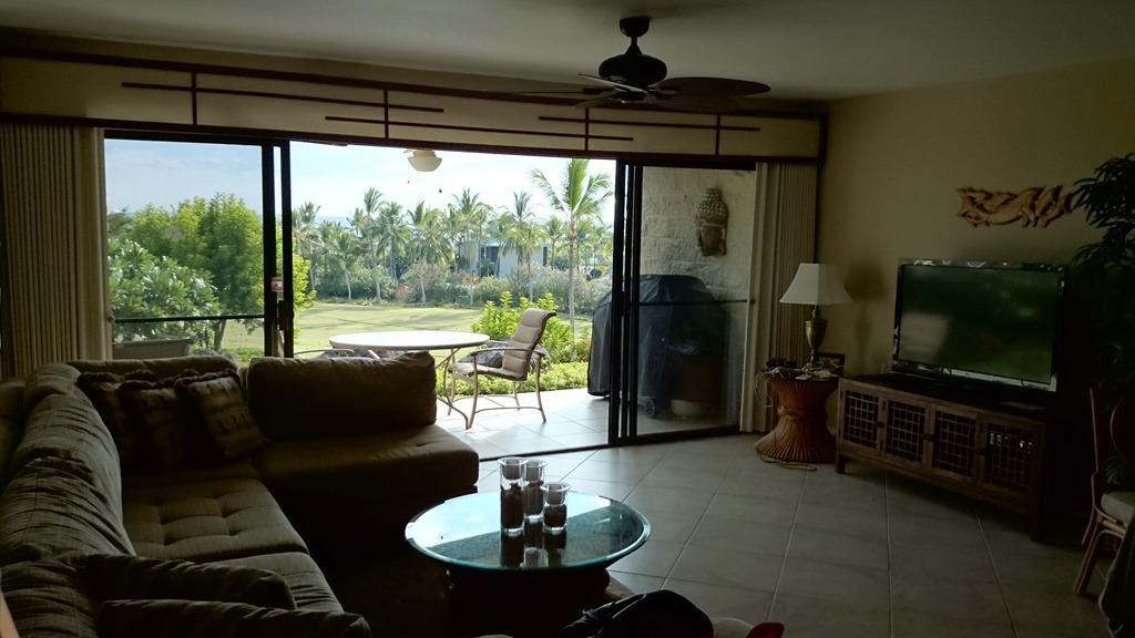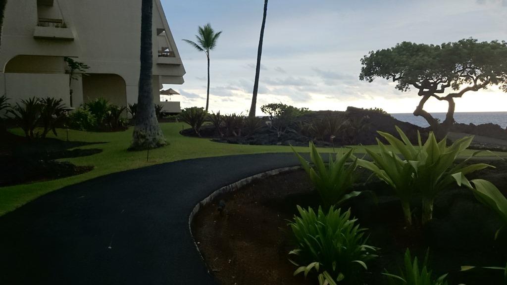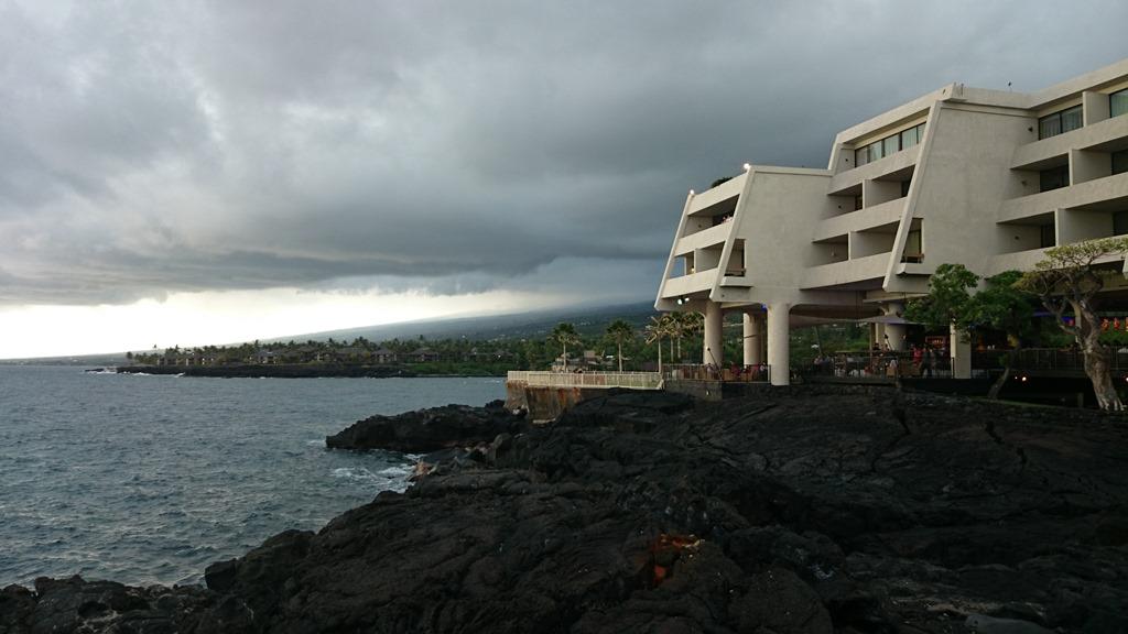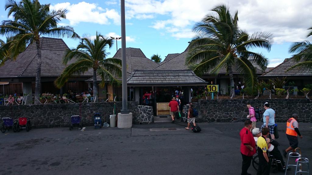 コナ空港が趣があって、建物がちょっと並んでいるだけなんですよ。飛行機から降りて歩いて出ていきます。今回は知人夫婦と一緒に宿泊ということですが、先に着いていたので迎えに来てもらいました。ありがとうございます。