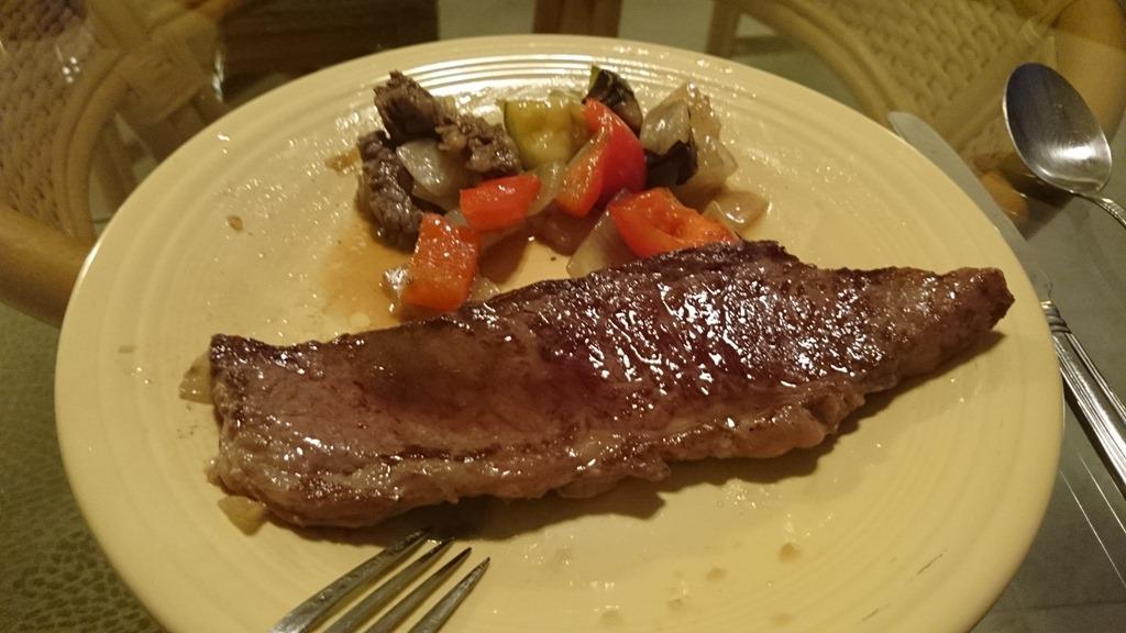疲れた体には、ということで晩御飯はステーキを焼いていただきました。