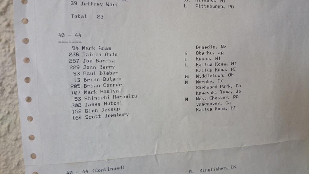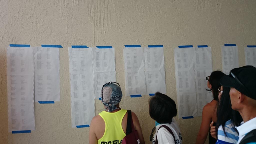 エントリーの確認なのですが、壁に参加者とゼッケン番号が一覧で並んでいます。そして係りの人に、番号と名前を告げます。身分証明書を持ってきてね、となっていたが確認されませんでした。ちょっと不安なので見せたら「ありがとう!」とお礼を言われました。なんとも緩い受付です(笑)