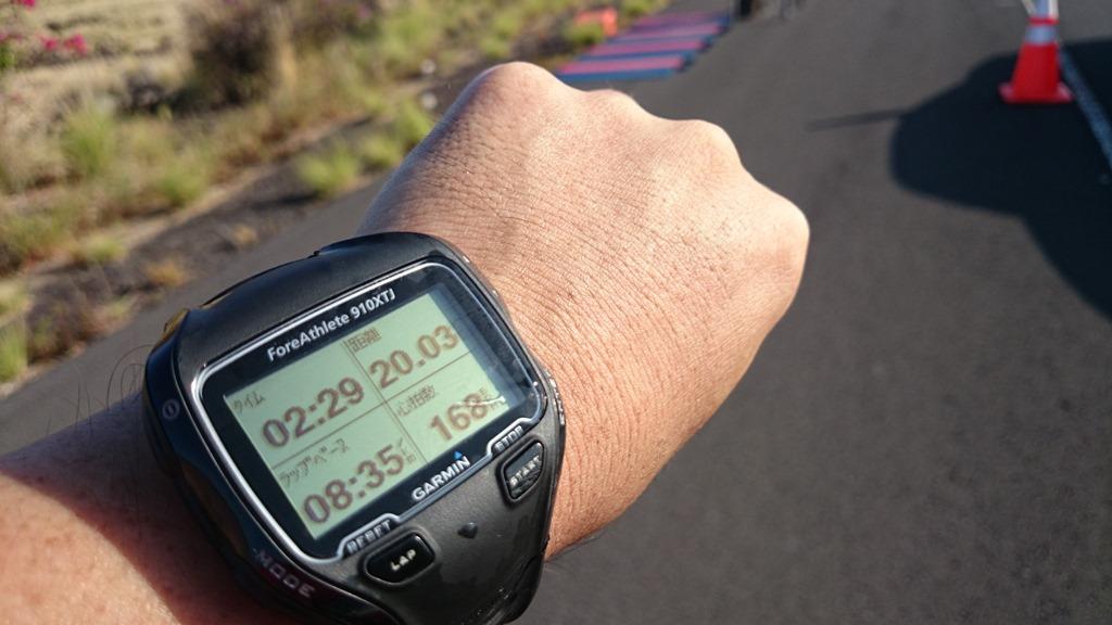 まぁ、 20km を暑い中ボチボチ走っていたのでこんな感じかな、というところでしたが、この後もう足が動かなくなり、給水所に向けてひたすら歩いて、給水所では水を2つ貰って1つは頭から被り、1つは飲んで、後半は水筒に氷と水を入れてもらうという状況。暑くて暑くて、堪らないレースです。