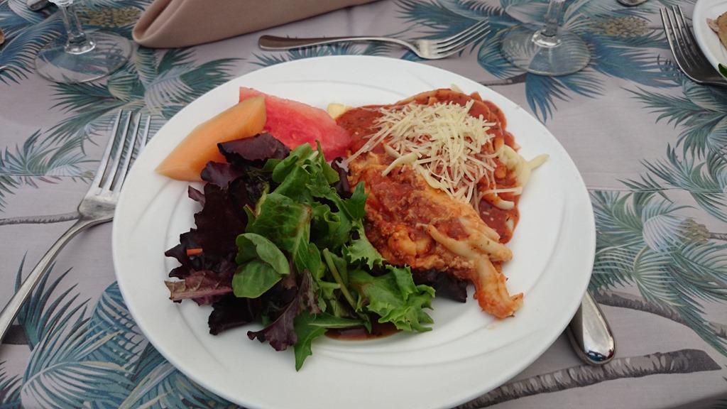 今回は JAL 羽田便で行くことにしたので、6 月 20 日の夜中に旅立つ飛行機に乗りました。金曜日は会社で仕事をして、そのあと空港に行くという流れが作れるので、本当に羽田の深夜便は助かります。下の写真は機内で食べた現地到着前の食事、美味しかったですよ。
