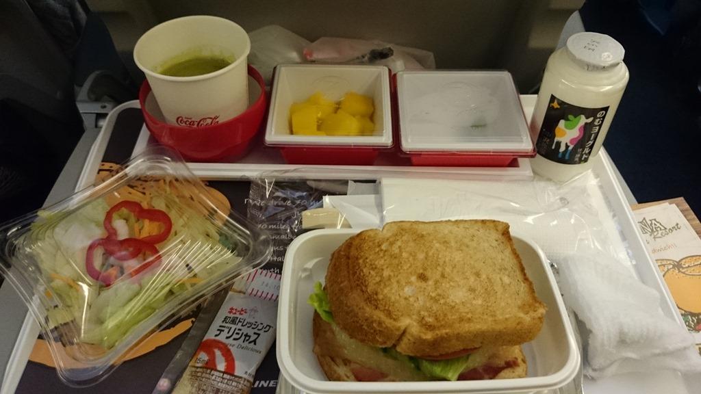 帰りも JAL 、チキンラーメンみたいなものが置いてあったので、それを食べてその後帰国しました。