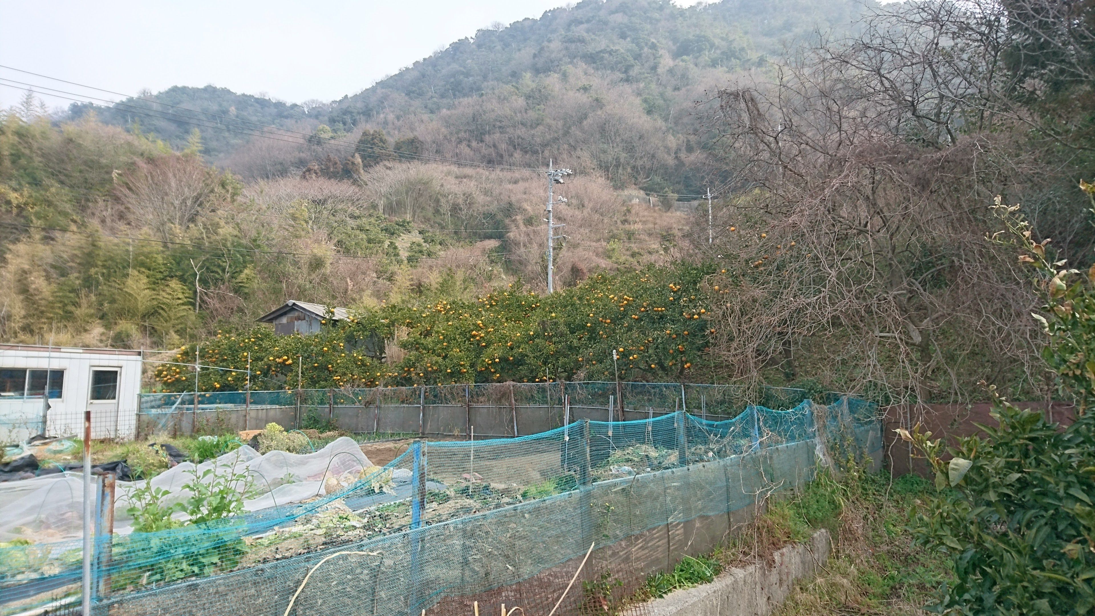スタート地点の左側は海、右側はみかんが木にぶら下がっています。自然も多いのをスタート地点で感じております。