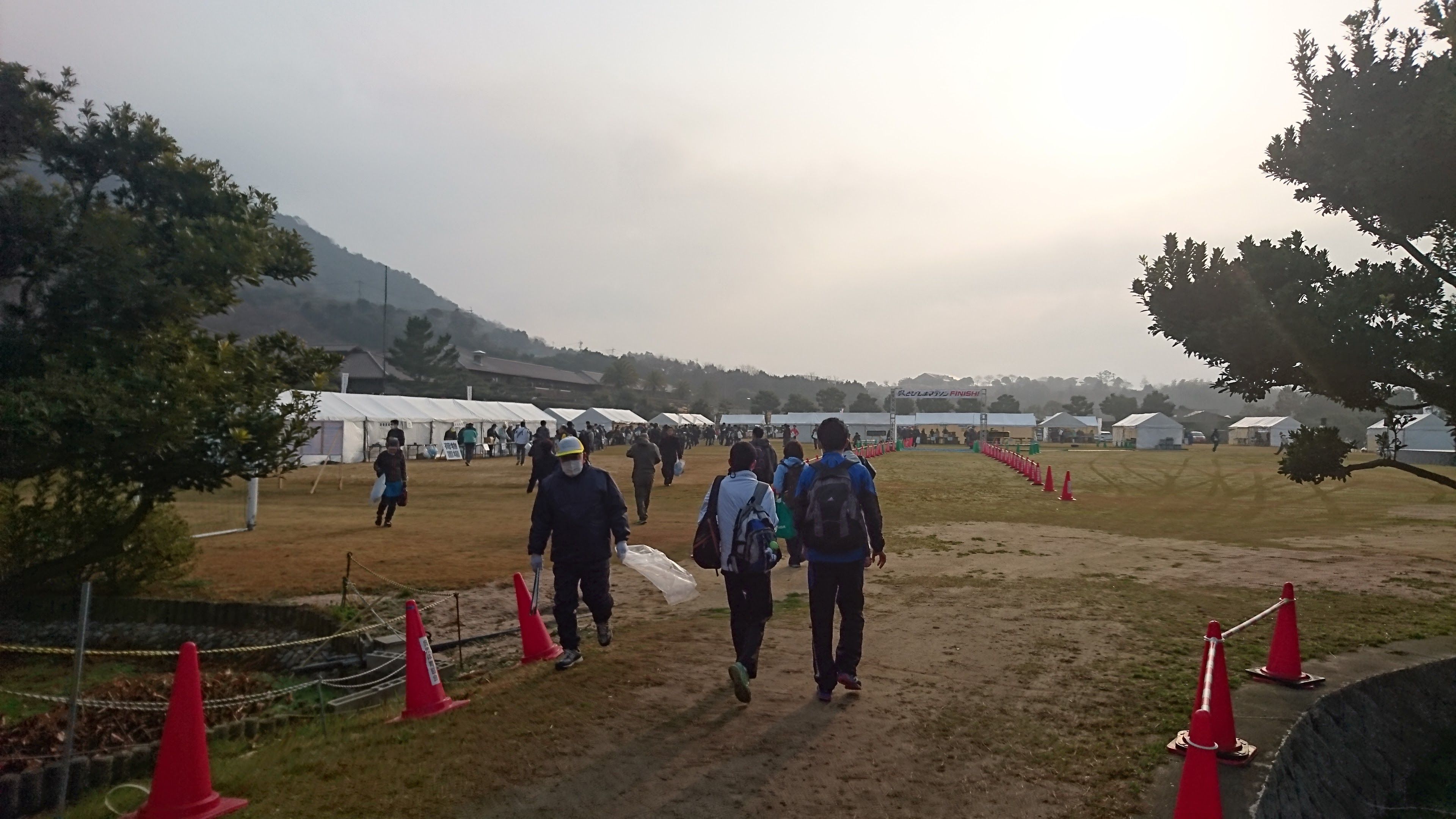 とはいえ、実際にバスに乗って現地につくのに 1 時間半ぐらい、現地が駐車場渋滞になっていて、8 時半ぐらいに到着という感じになりました。駐車場からはシャトルバスなので、駅前からバスに乗っていくのが一番良さそうと思いました(遠征の場合)。