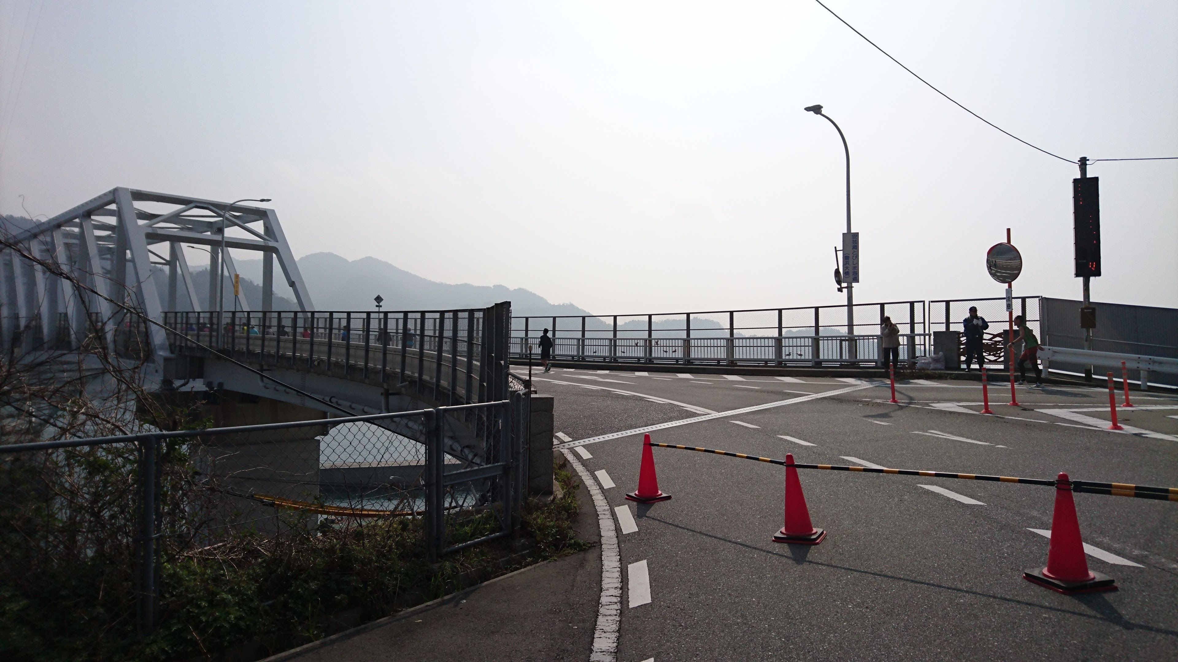 スタートから 3km ちょっと先まで基本登りです。じわじわ登るのですが、その理由はこれ。大橋まで登ってきたわけですよね。標高差 50m ぐらいになっています。橋の上をこんな感じで走るのは気持ちいいです!