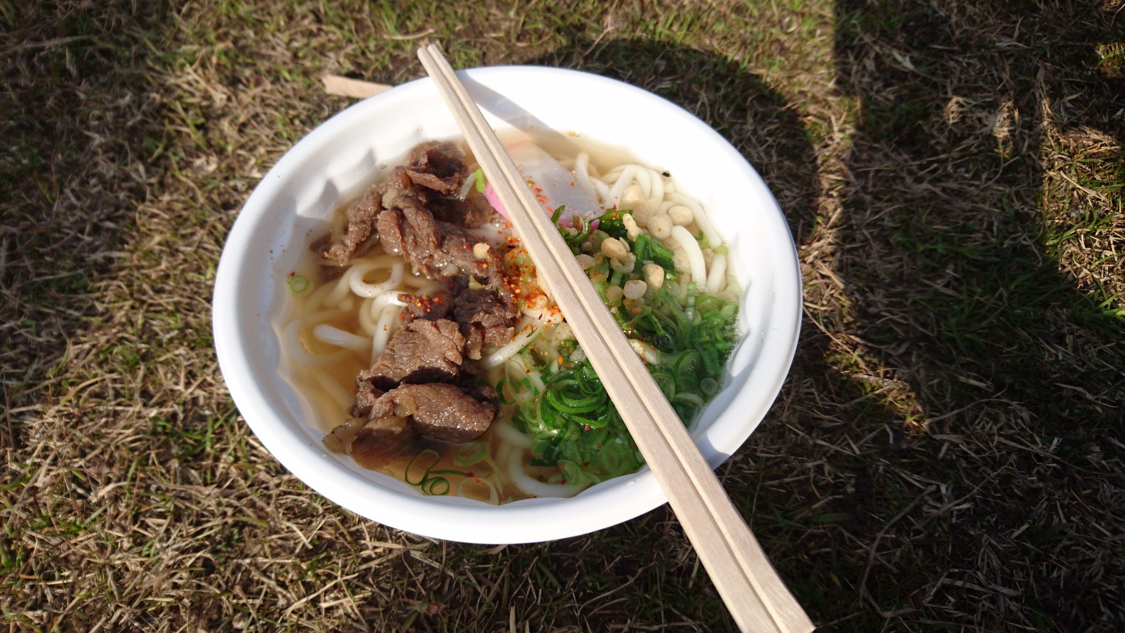 荷物を受け取って、帰りのバスの時間まで少しあるので(早い段階だとちょっとバス乗る場所が遠いので)、お腹空いている私は何かを食べよう、とうどんを食べて、