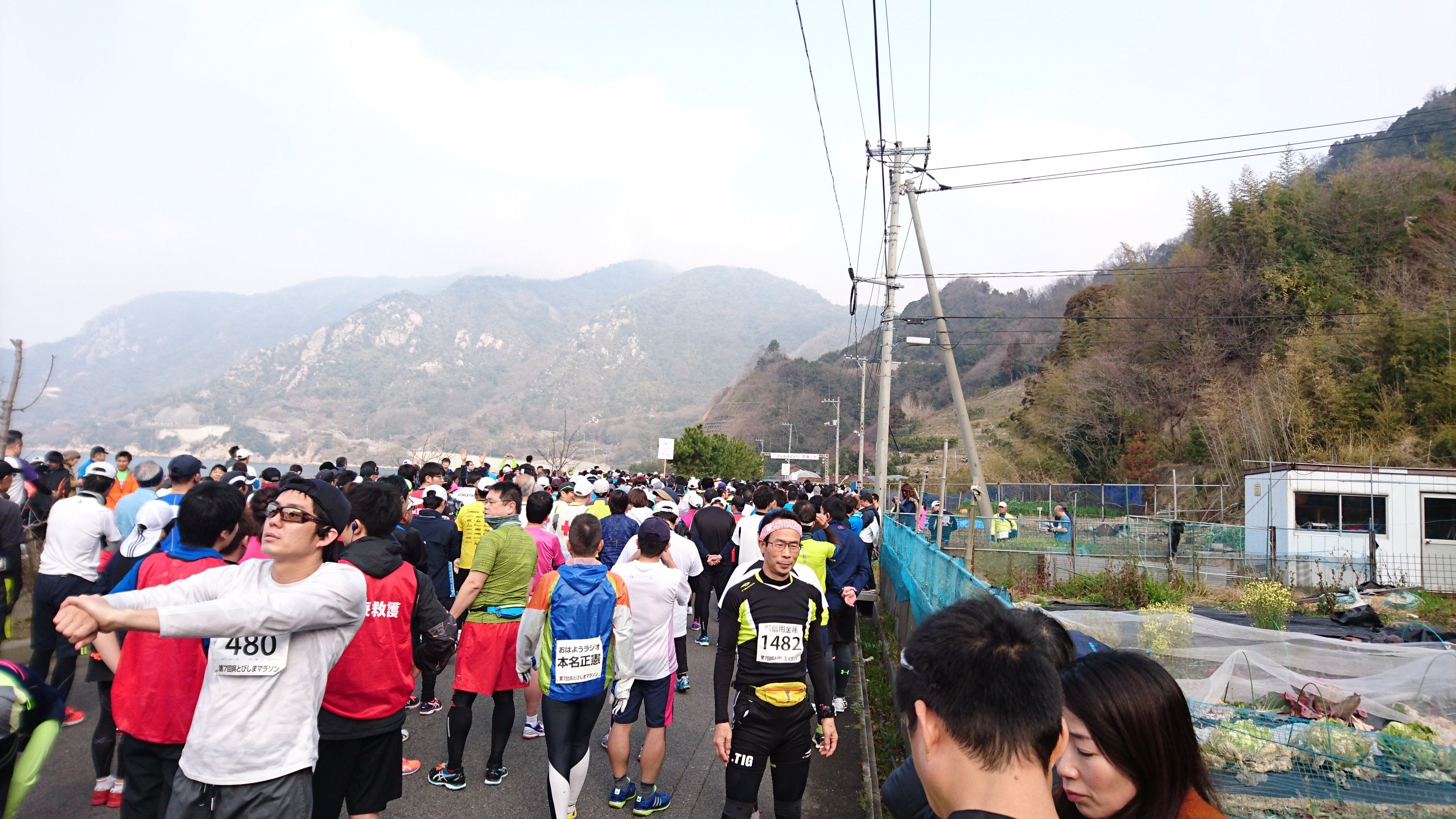 実は制限時間が 5 時間半というレースなので、私は最後尾のグループ、4 時間半〜5時間半のところに並びました。それでもそれほど大きな大会ではないので、1 分ちょっとの遅れでのスタートとなります。