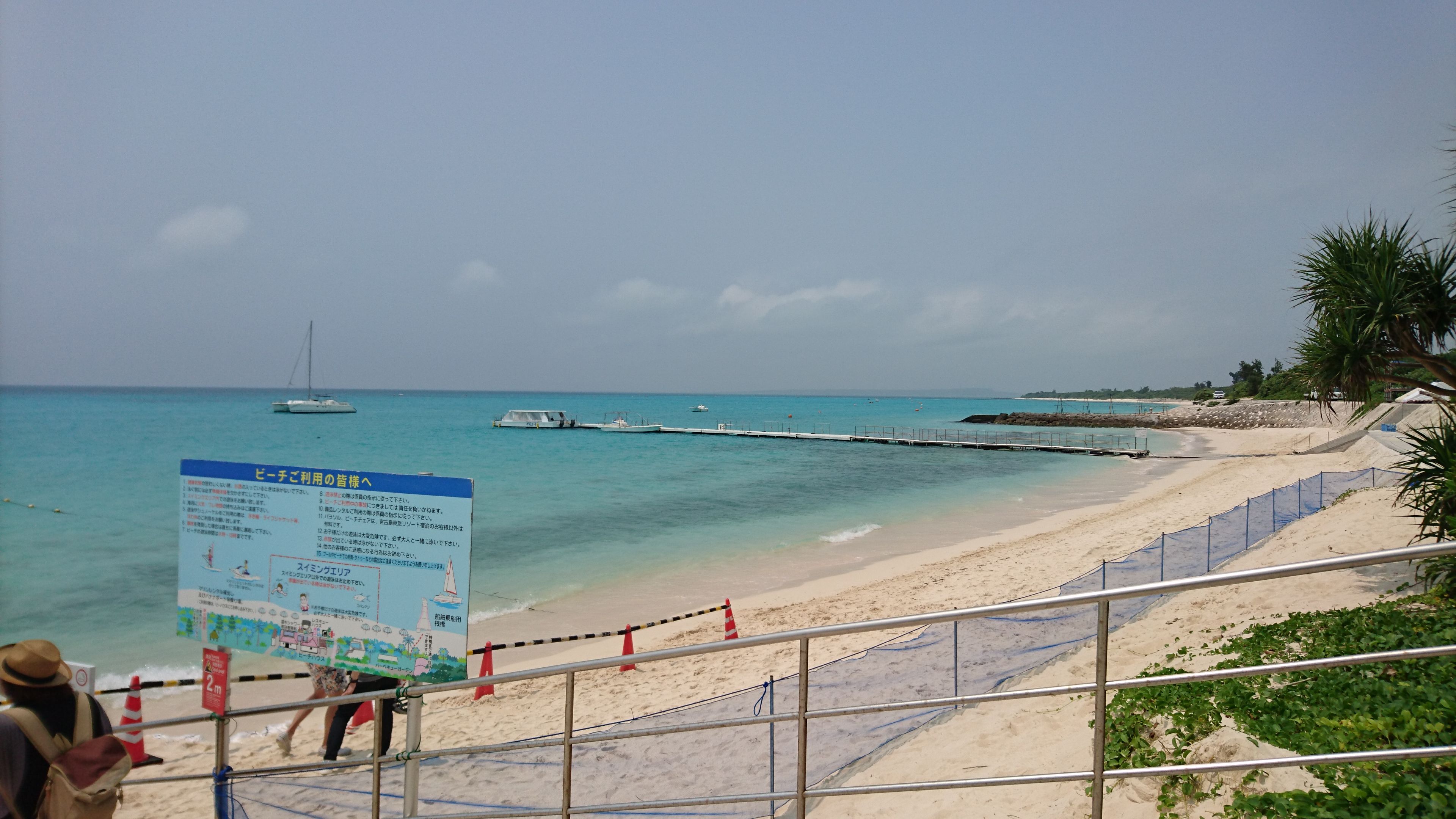 ビーチは前日に撮影した写真になりますが、実際は黒いウェットスーツを着た人がたくさんいます。この中から知り合いを探すのは不可能!ということで諦めてスタート地点に向かいます。私はスイムが遅いので、後方スタートを狙います。なお、当日は波は 0.2m 、20cm ということは波がないぐらいです。