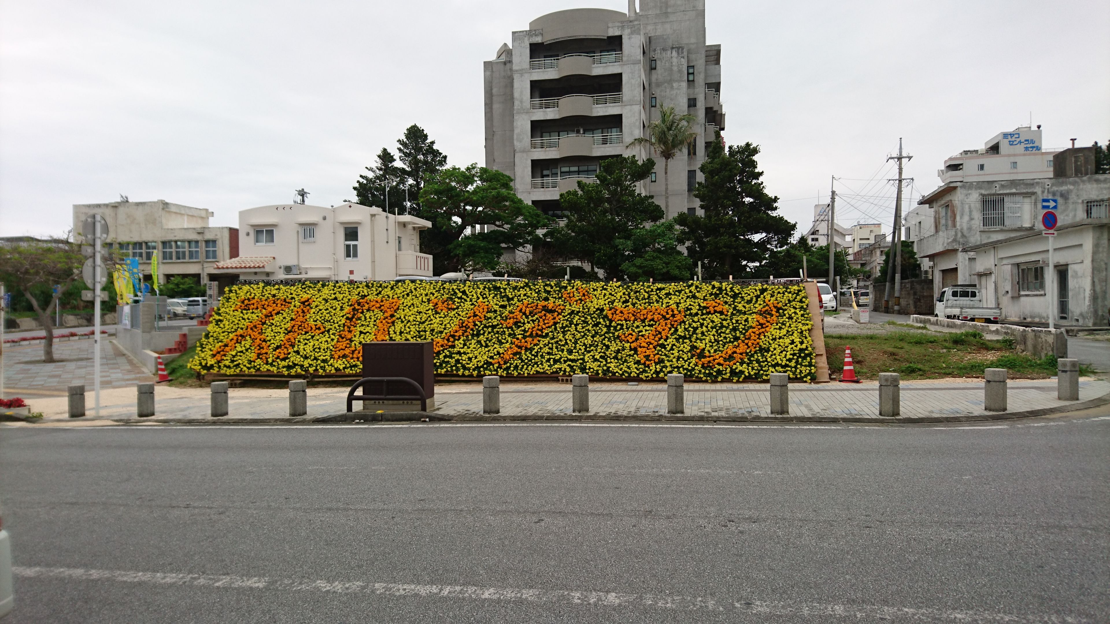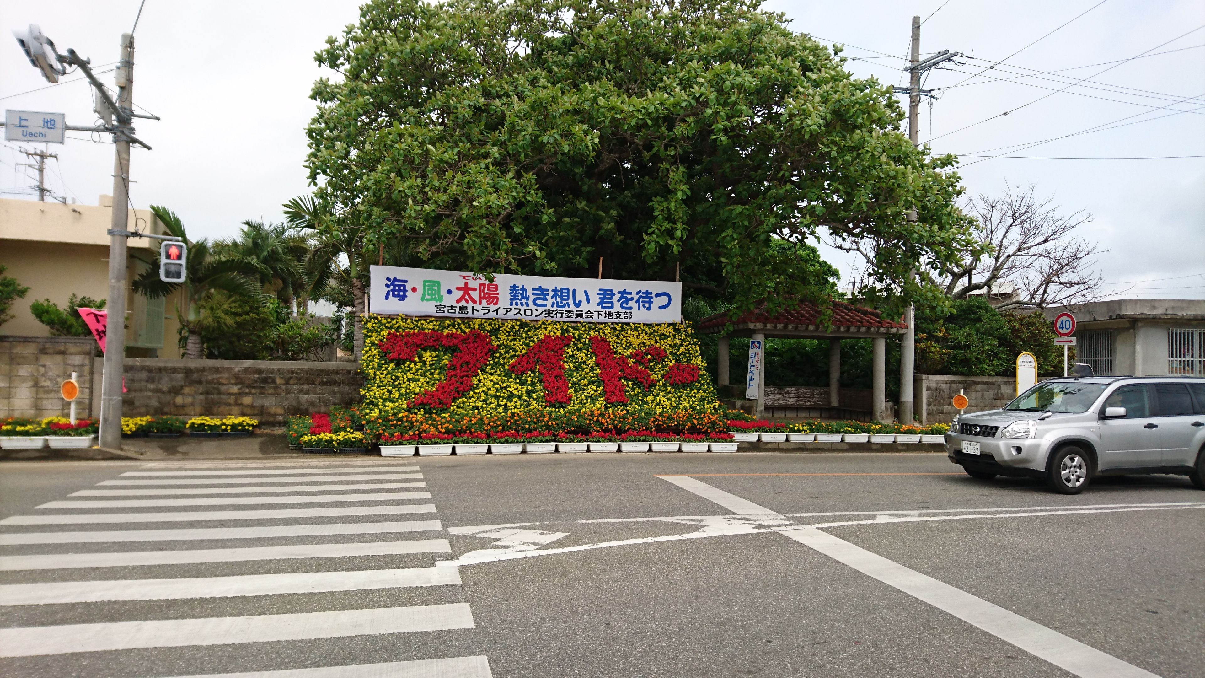 しばらく走ると、ワイドーと書かれたフラワーアレンジメントの場所を過ぎていきます。
