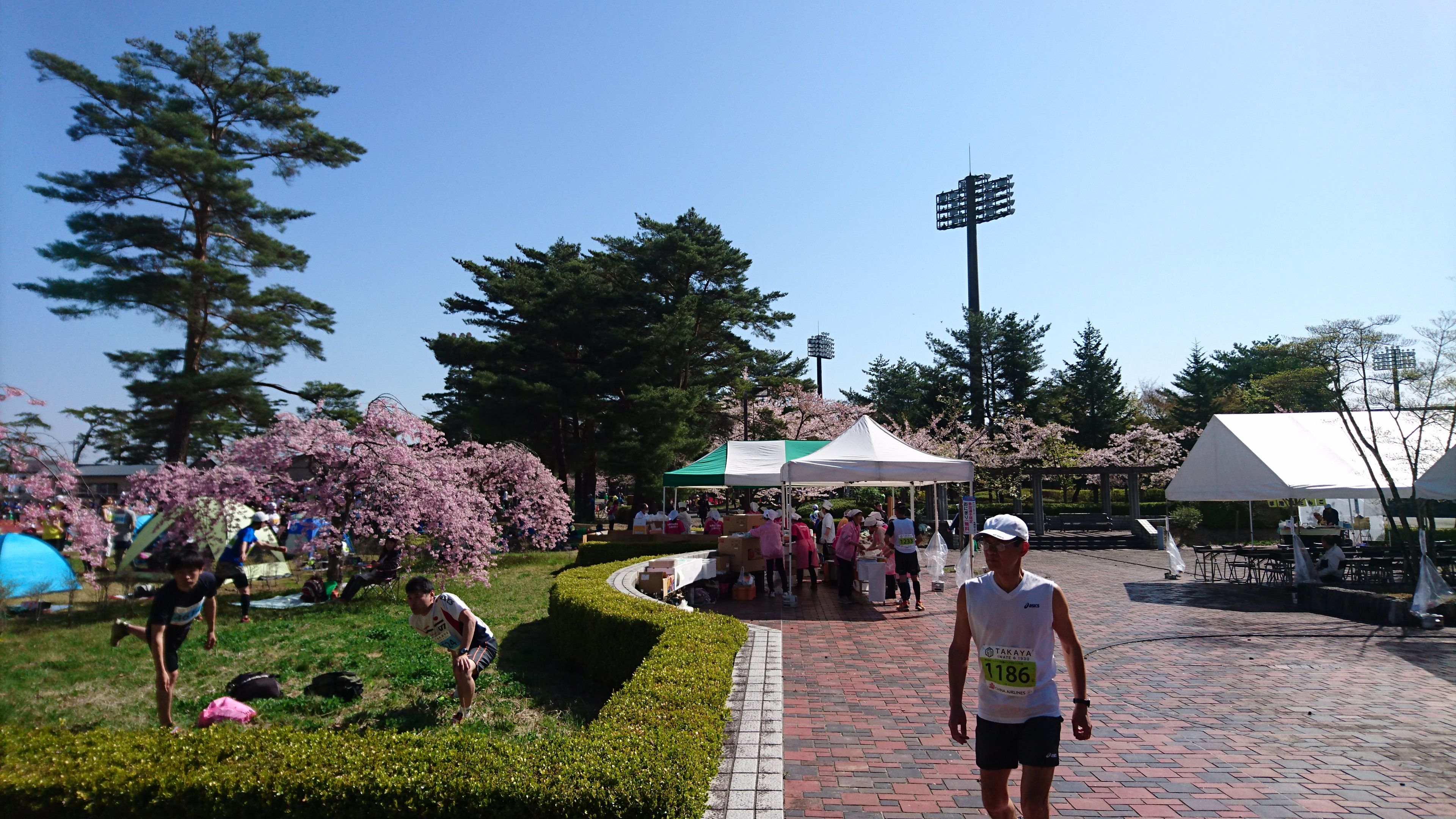 宮古島トライアスロン後1週間で花巻ハーフマラソンに参加。桜や景色を楽しみつつ、給食のわんこそばやフルーツを満喫し、のんびり完走。