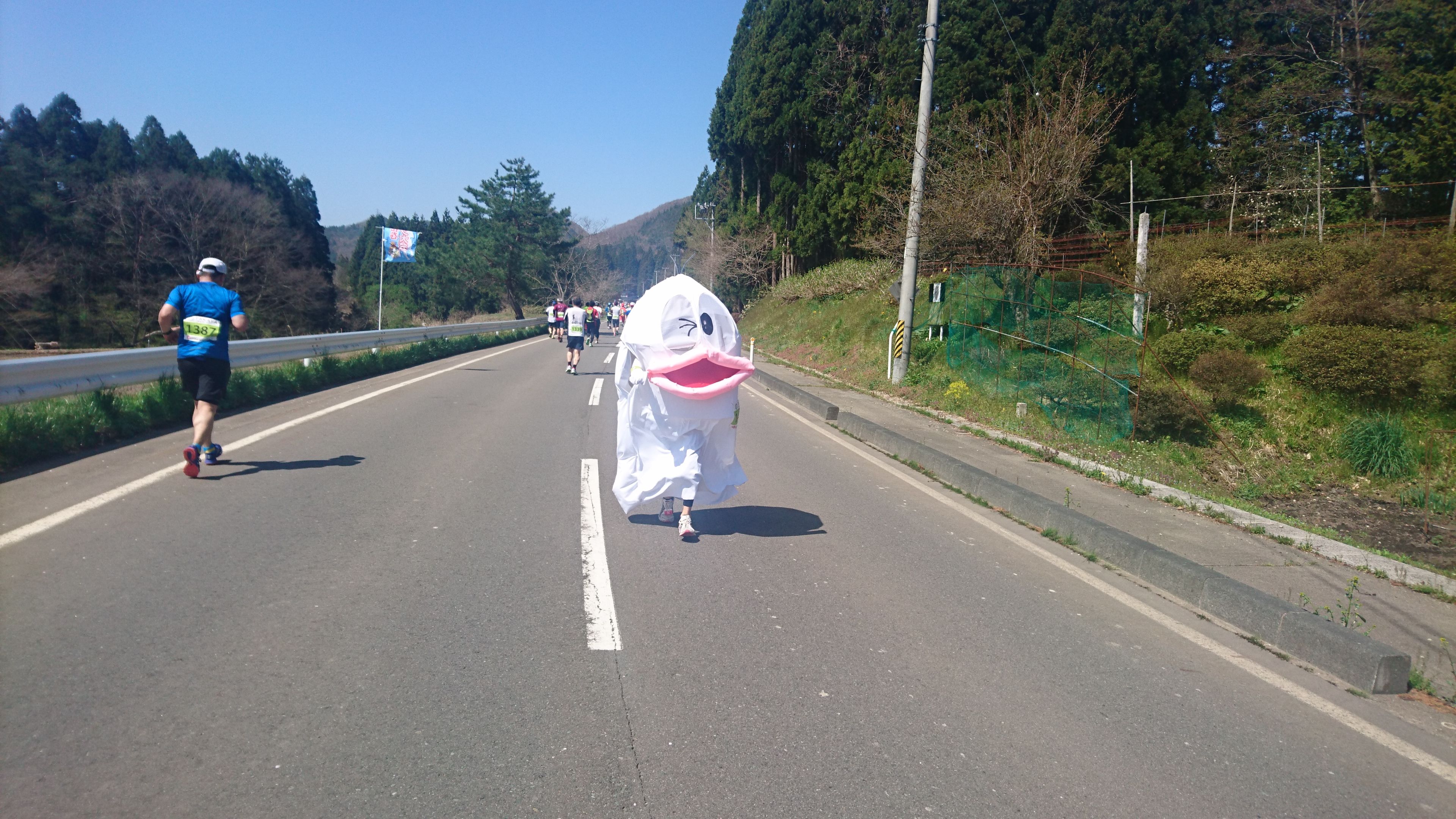 仮装して走っている人も多いのですが、これは大変そうでした、つい写真を撮っちゃいました。