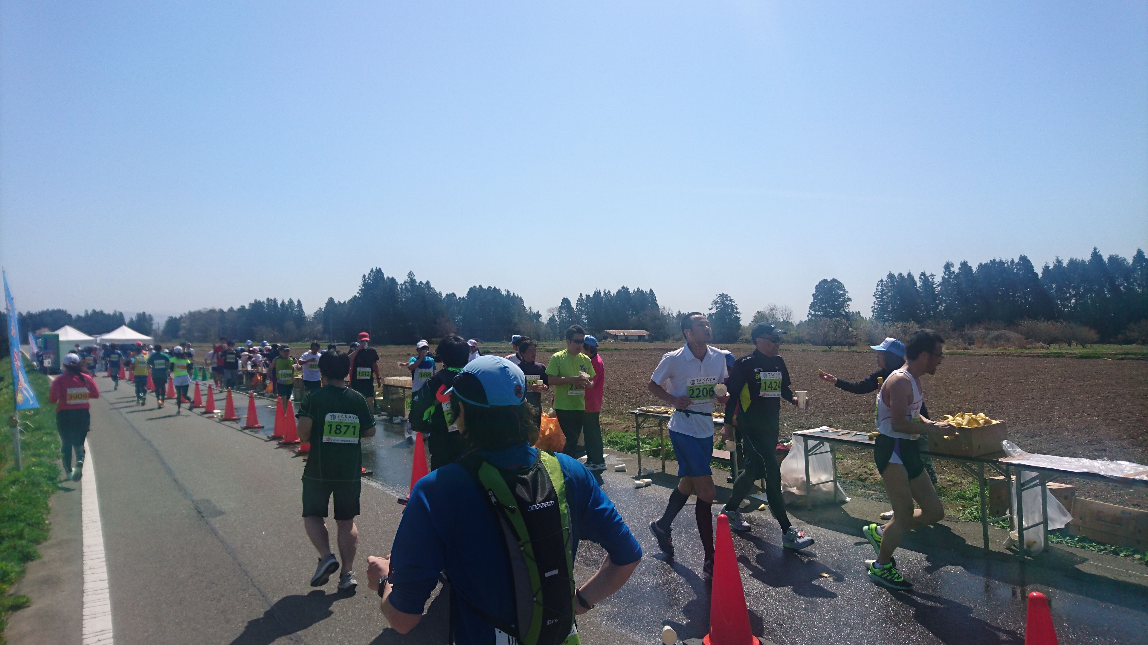 折り返し地点をすぎると給水所があって、バナナをいただきました。