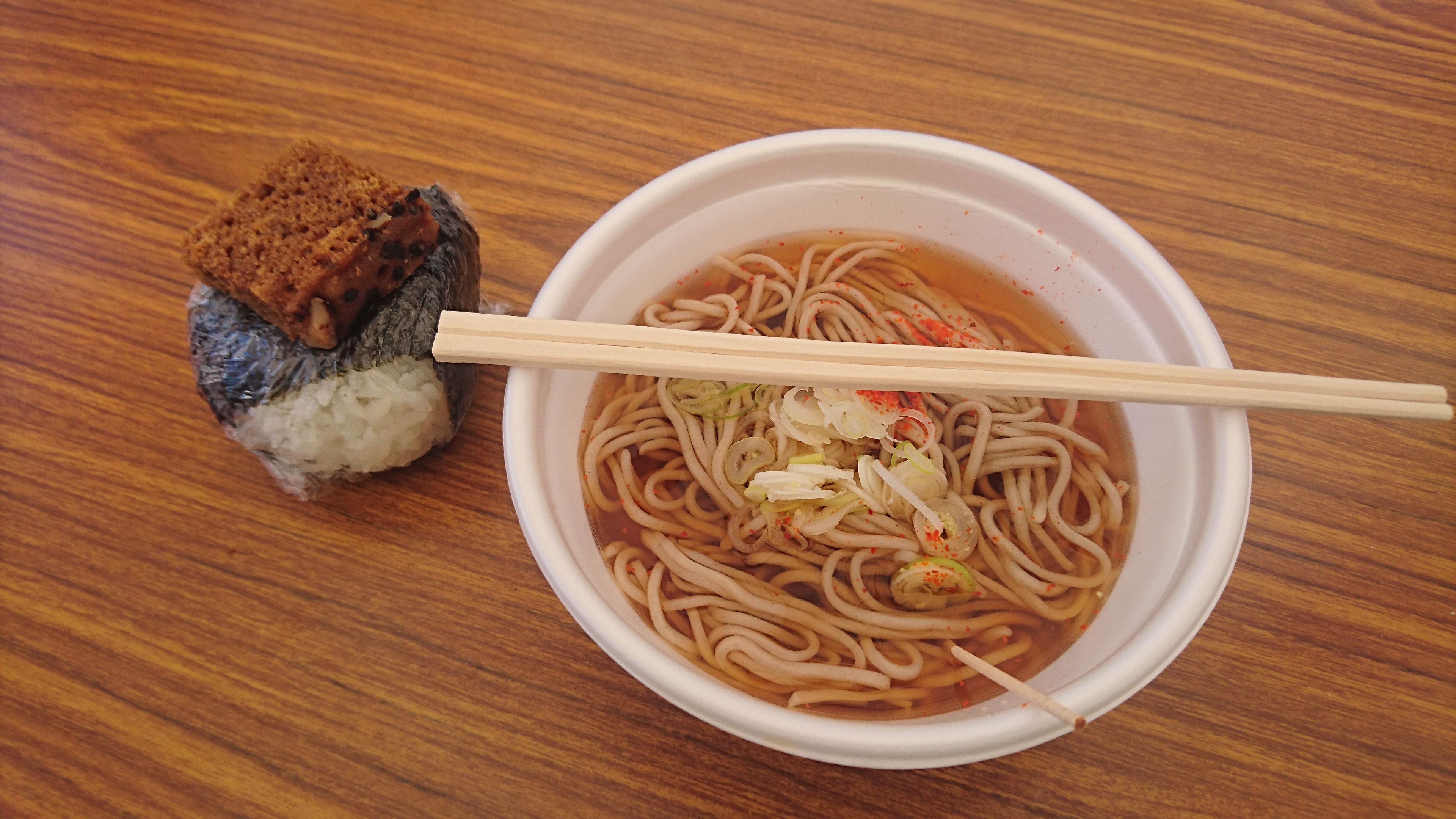 いただいたのは、そばとおにぎりです。