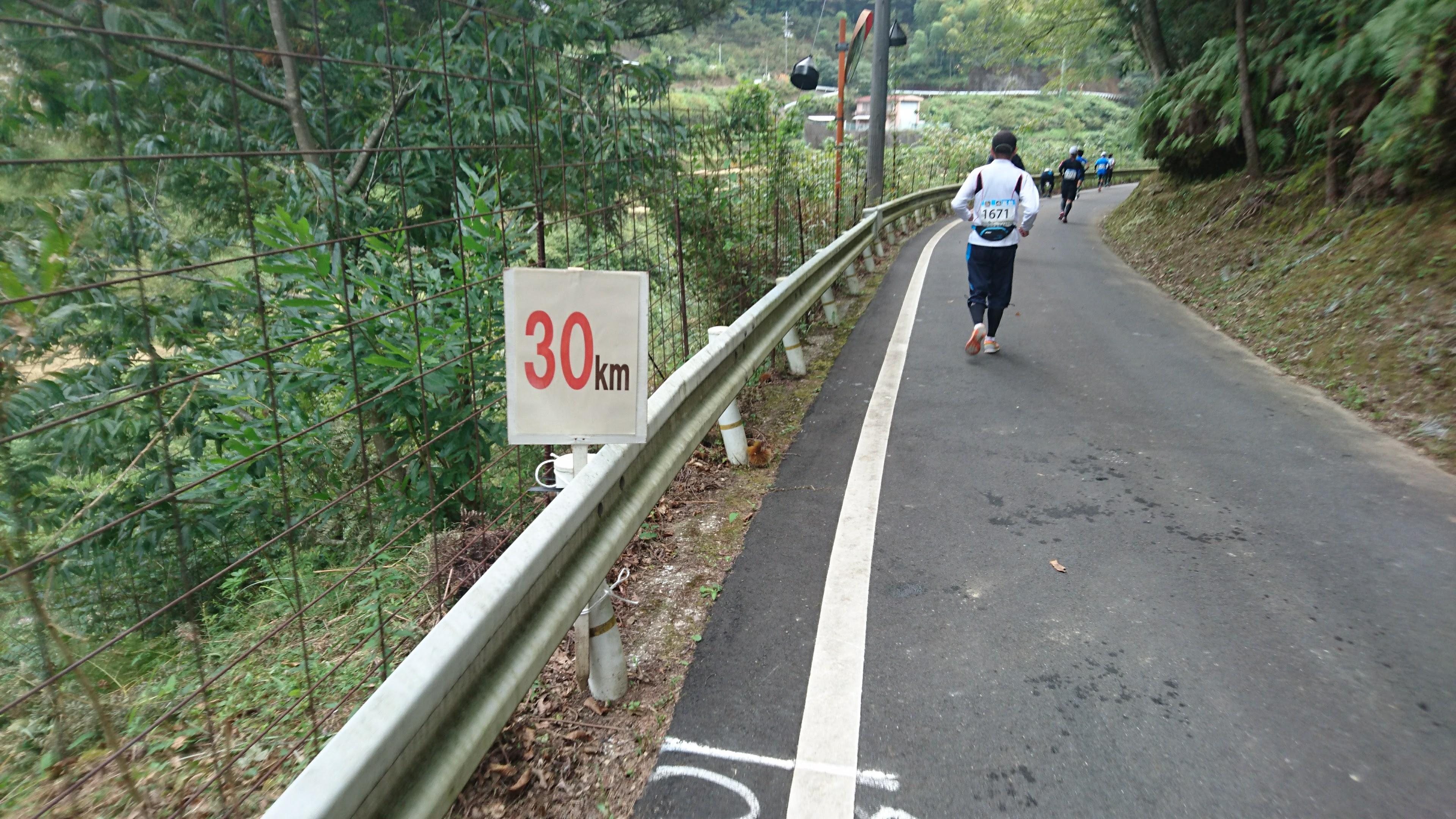 まだ下り気味の道のまま、30km を無事クリア。