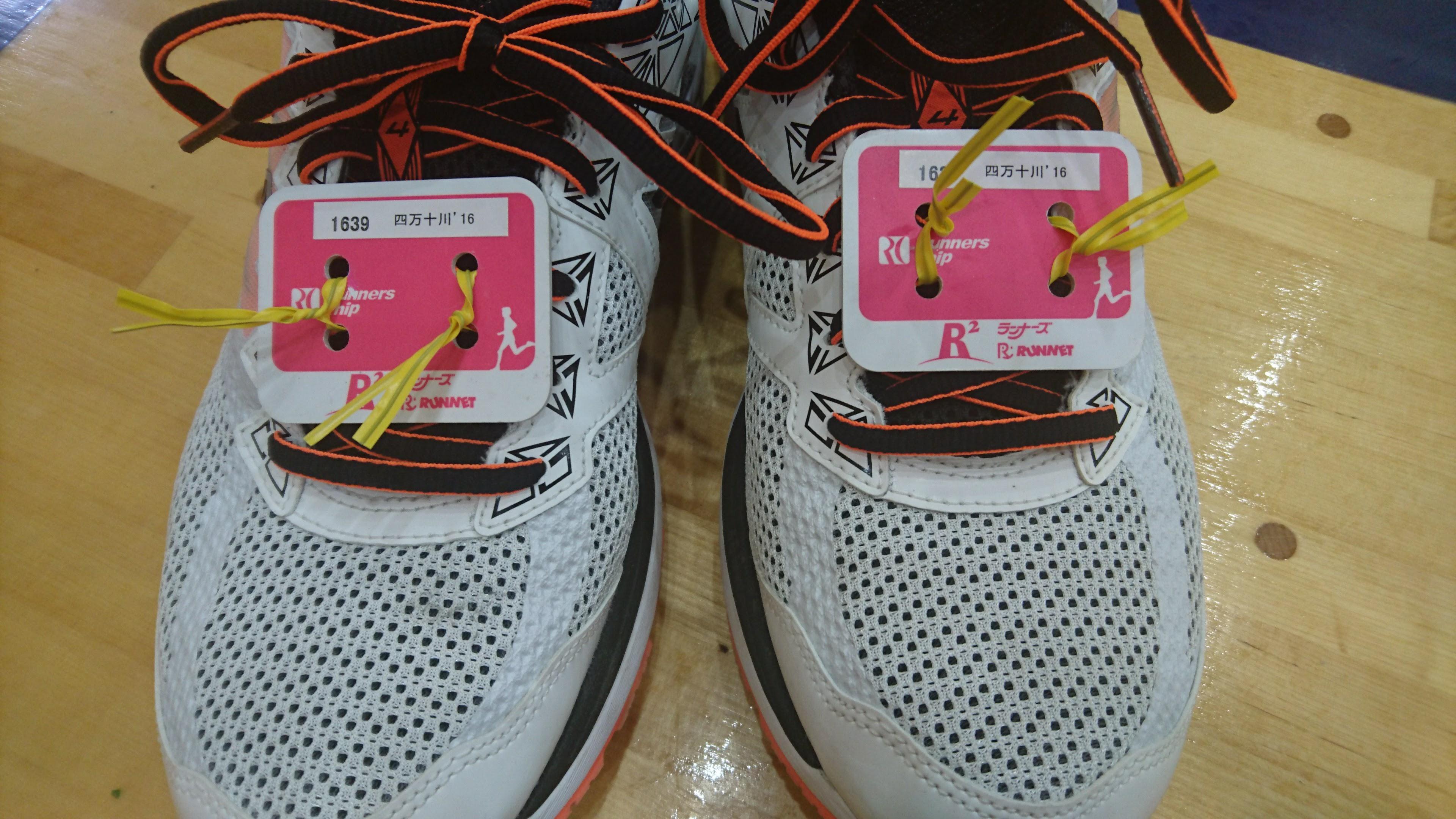 なぜか計測タグが 2 つ付いていて、予備なの?とか思っていたのですが一緒に出ている知人に聞くと「2 つとも着けるんだよ」と言われます。え?そうなの?と思って会場に行ってからみんなの靴をみると、やはり 2 つつけています。そうなんだ、、、知らなかった。