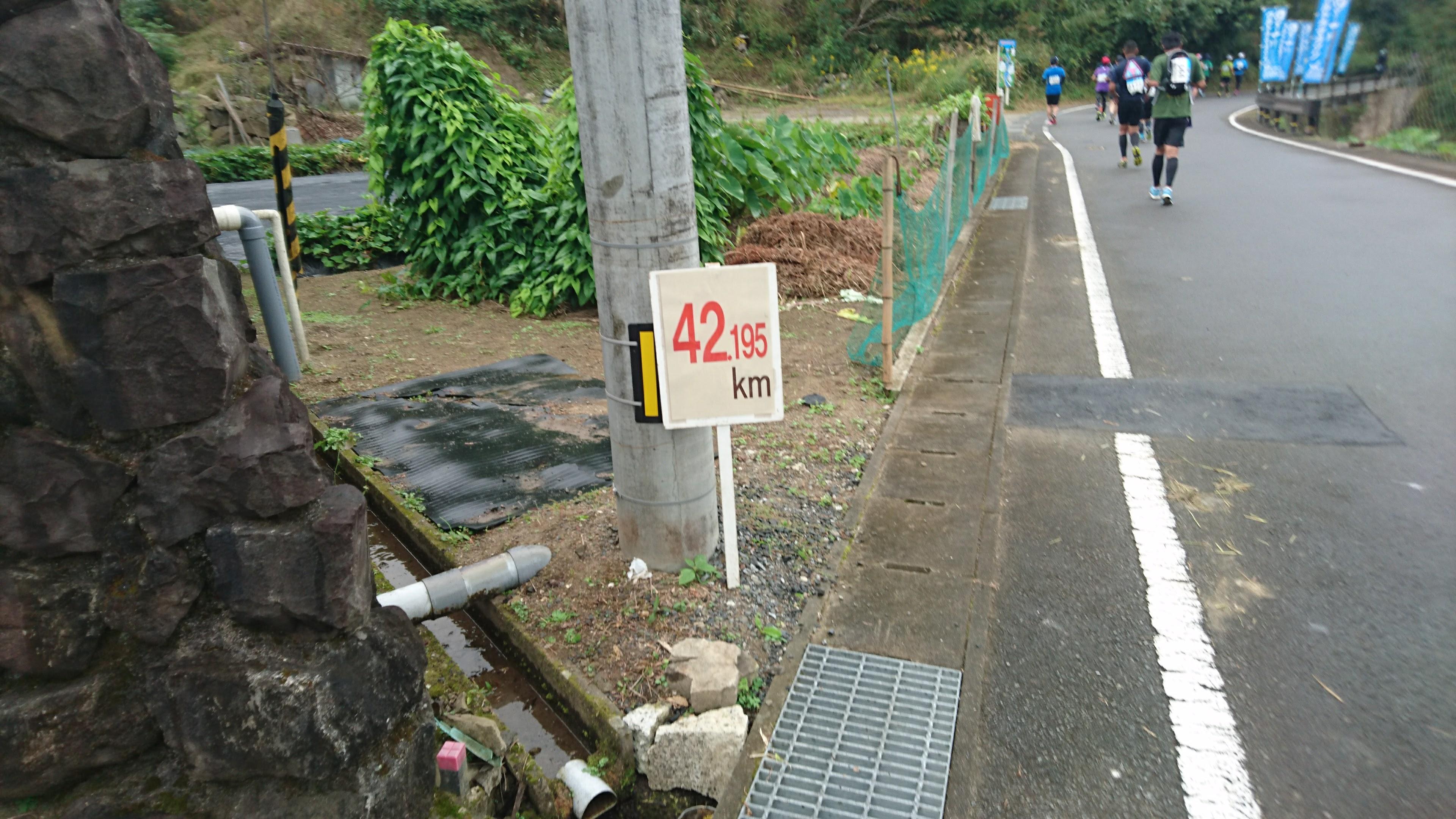 理解していましたよ、途中でフルマラソンを超えることは。ただ、その現実をまざまざと見せつける、この 42.195km の看板。この看板はこう語ります。