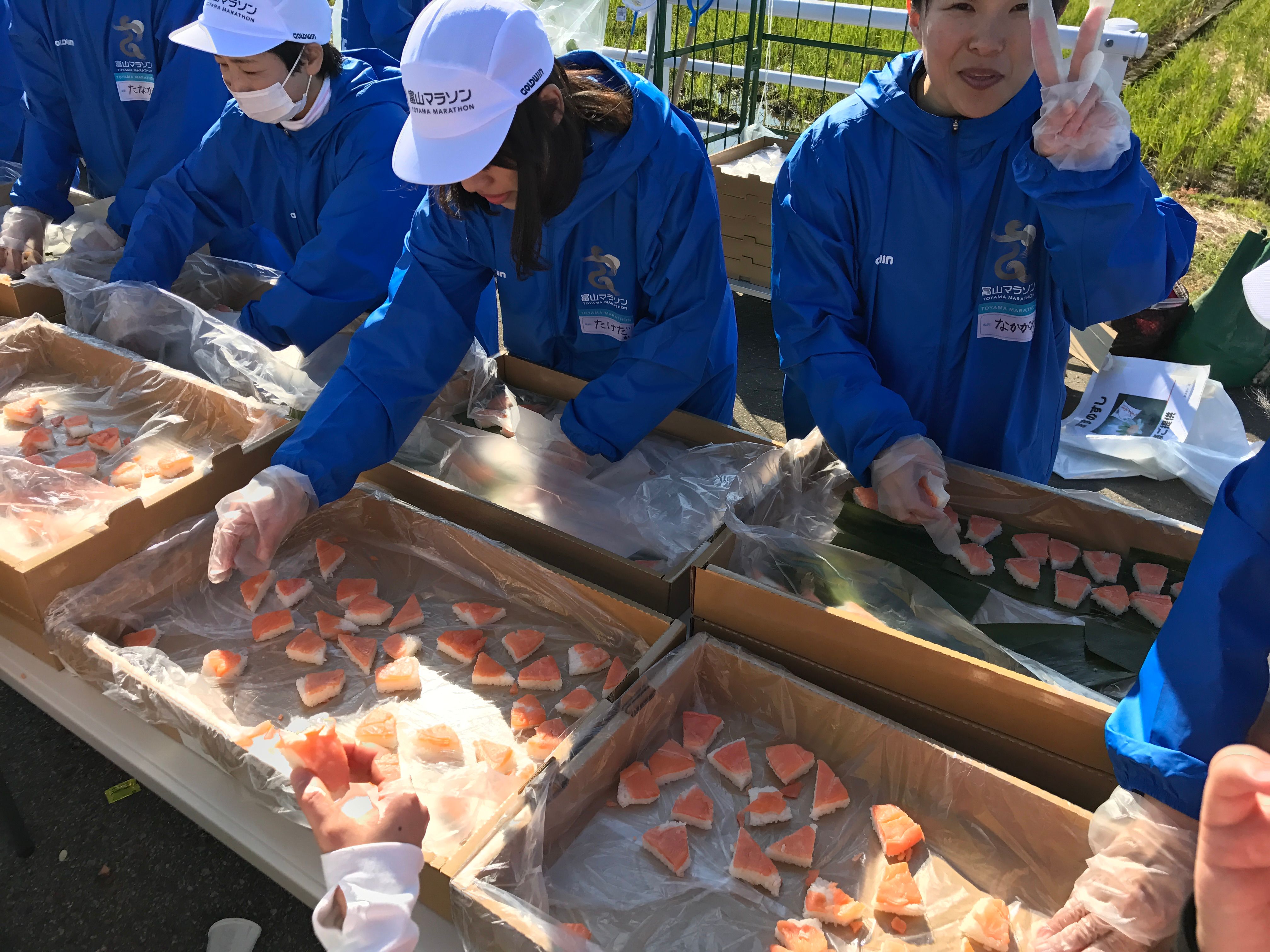 富山マラソンを久々に走破。橋や帆船の美景、充実のトイレ管理と応援が魅力。天むすは品切れつつも快走し無事完走。ポケモン卵も大量孵化。