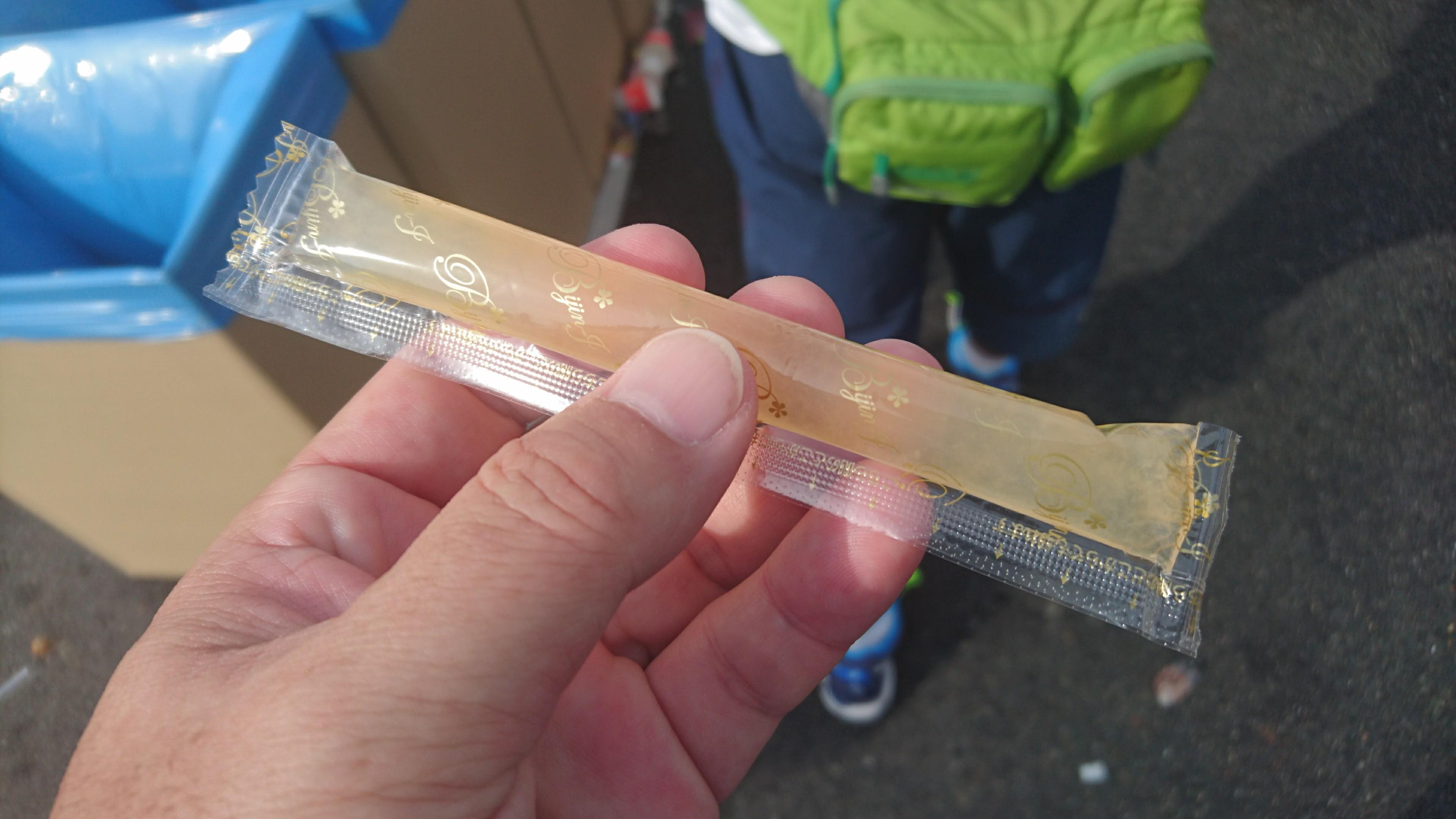 おかやまマラソンも給食が充実していました。きびだんごなども当然、ミニトマトに漬物、ゼリーを食べます。