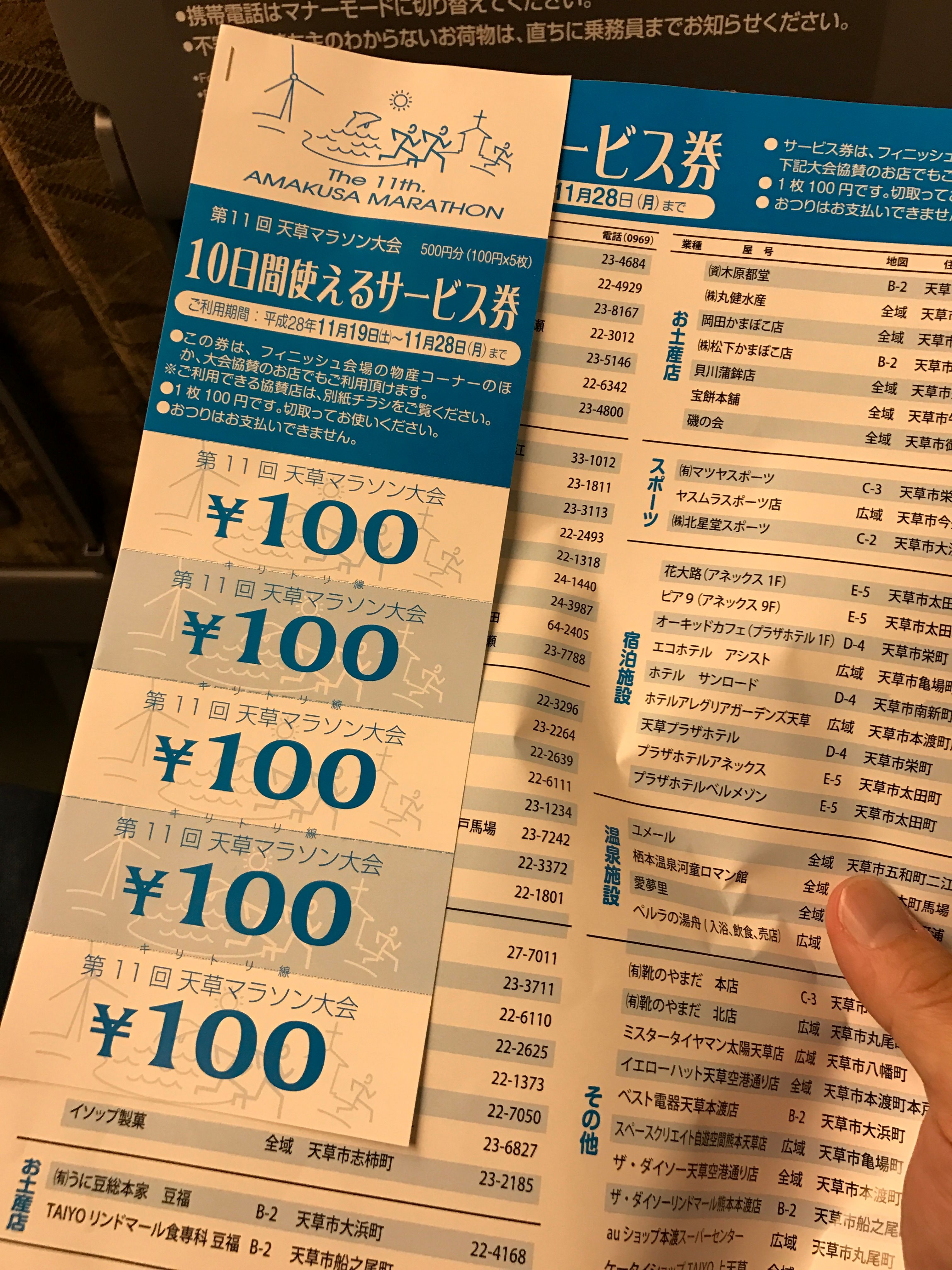 天草のマラソンに出るには、一番いいのは福岡空港から天草エアラインで移動するのがいいと思います。今回はそのチケットが取れず、新幹線、バスでの移動となりました。