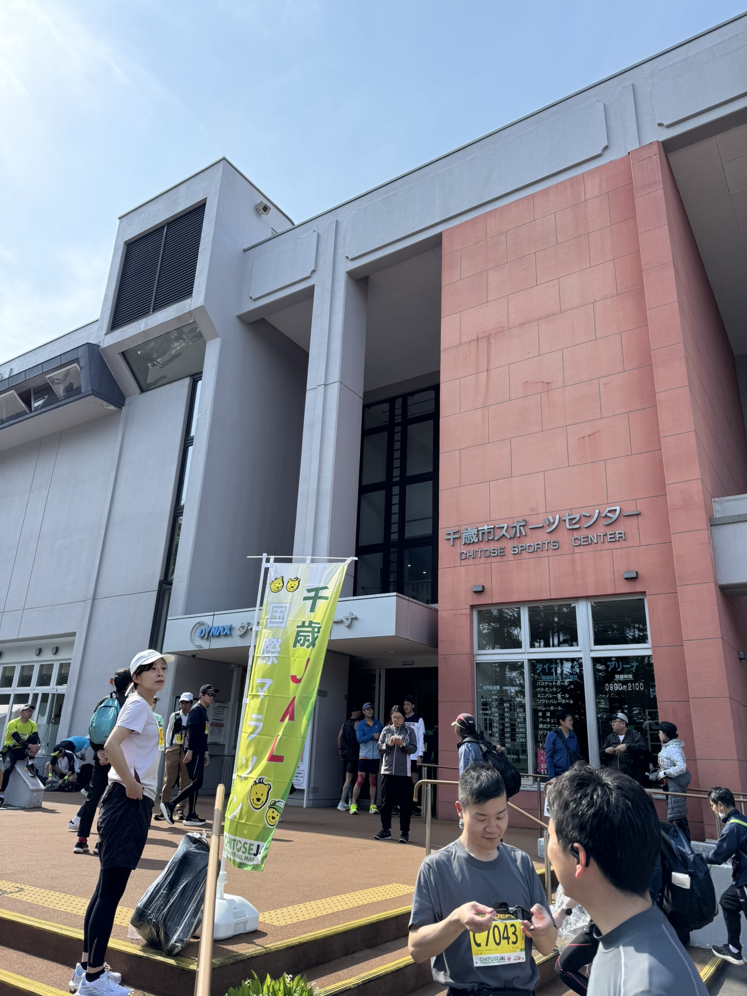 会場に到着すると、同じレースに出る知人とさっそく合流して久しぶり~ということで準備しながら軽い会話をして、荷物を預けたらスタート地点にいる知人にも会って、と一人で参加しているマラソン大会なのですが、多くの知人が参加していてスタート前から楽しいです。何人かの人は初千歳マラソンですが、ほとんどの人が複数回参加なので、この大会の良さがわかります。ただ、半数以上の人がハーフマラソンという感じではありましたが。