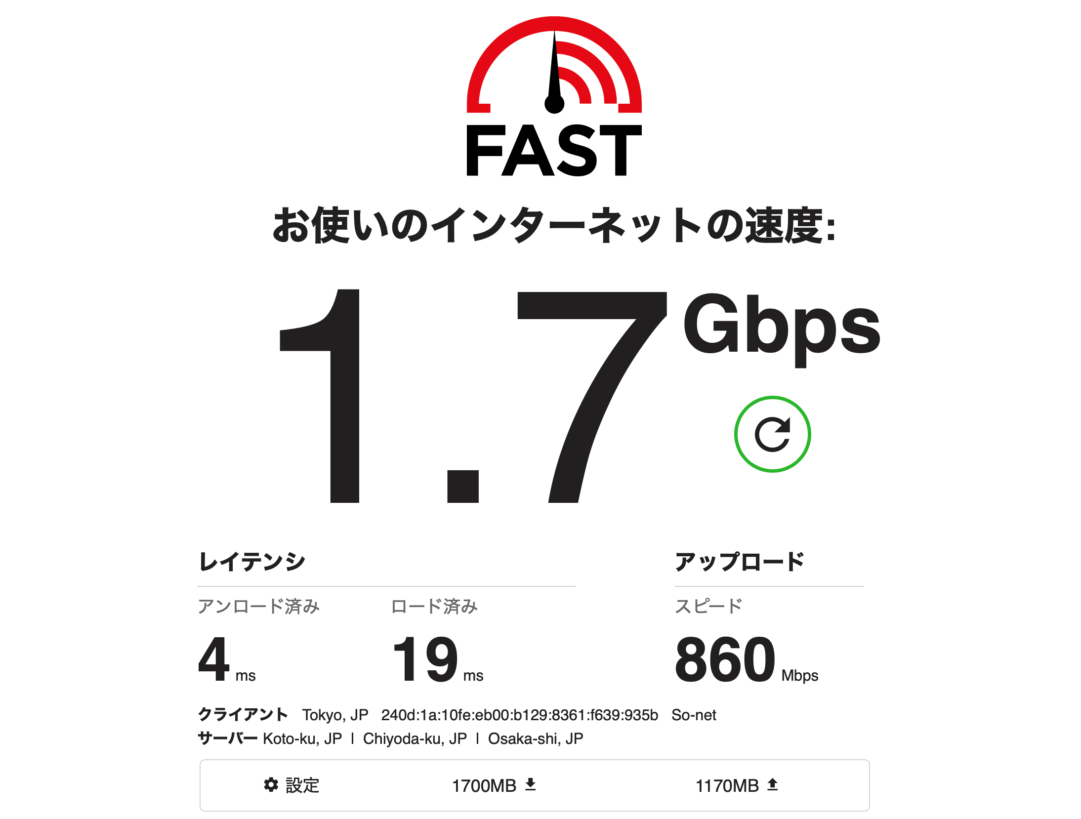 MacBook Air M4 を利用して2階からアクセスをした時の結果は以下のようになります。